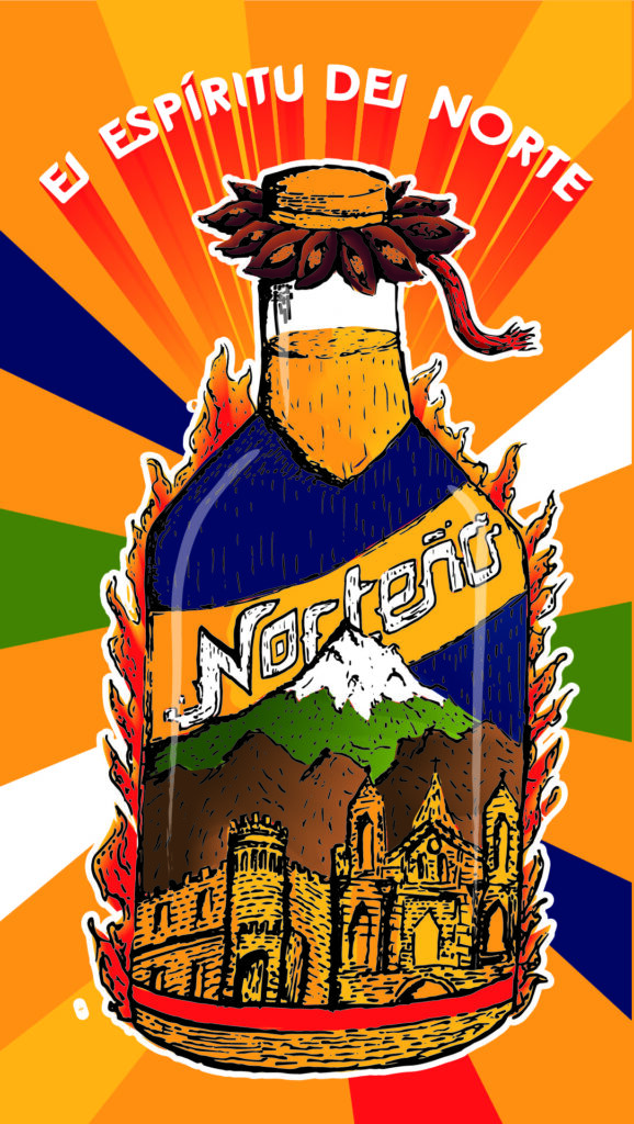 Se basa principalmente en la esencia viva de tradición y energía al presentar paisajes históricos tanto como su arquitectura y sus montañas, mientras que el fuego exterior es representar la energía y el carácter fuerte del producto, mientras que el paisaje interno simboliza el orgullo y la identidad de la tierra de donde proviene. Es, en pocas palabras, embotellar el alma del norteño.