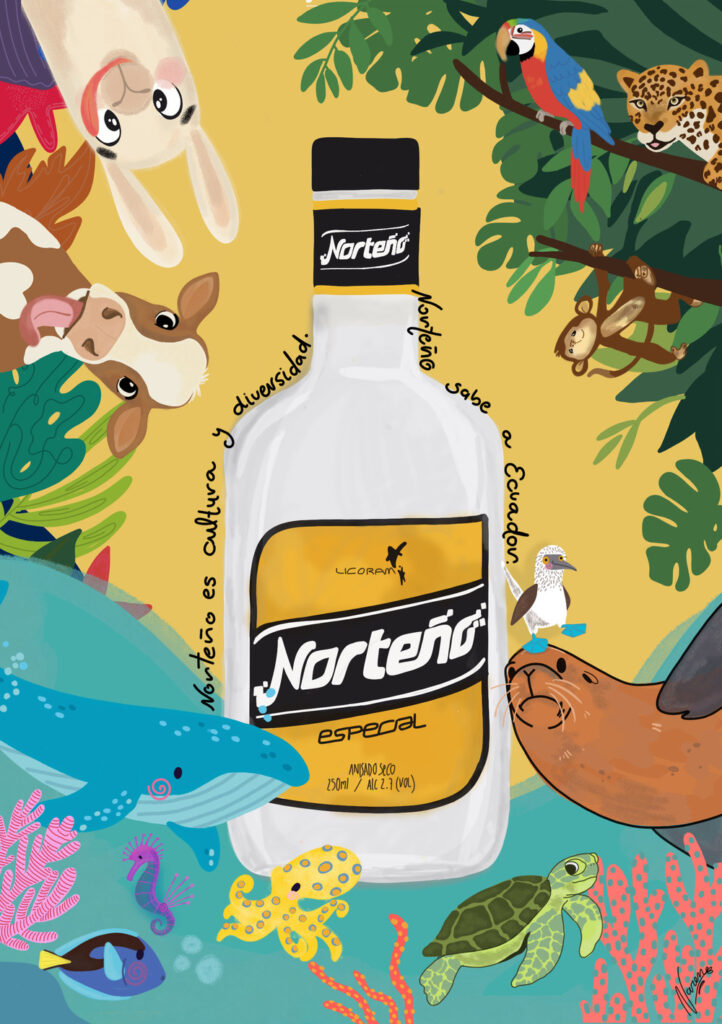 Es una obra ilustrada digitalmente, donde quise representar las 4 regiones del Ecuador y como Norteño nos une, por eso su nombre de norteño sabe a Ecuador y la frase que está dentro de la obra: “Norteño es cultura y diversidad. Norteño sabe a Ecuador”.