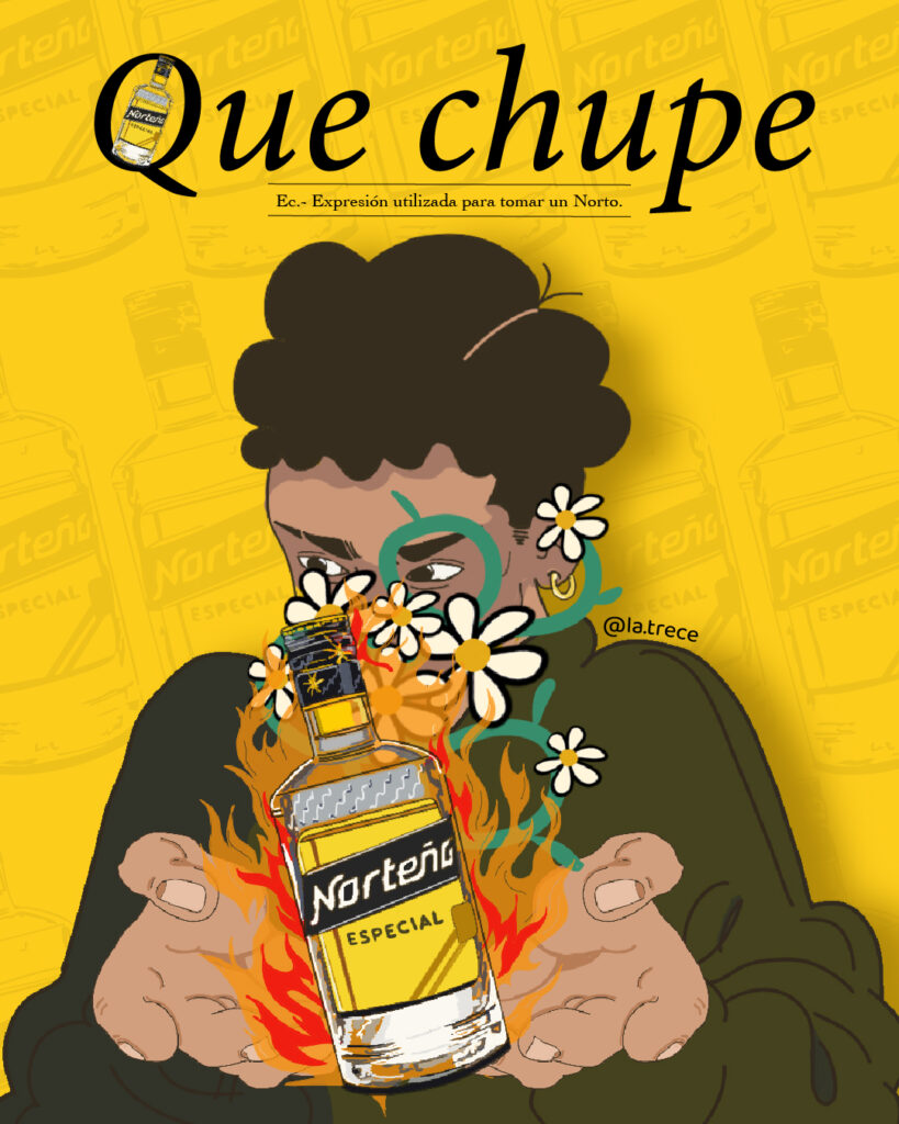 Entre flores y escarcha, el joven se refugia en su saco y en su botella. Las flores son sus amores; el Norteño, su calefacción. Una oda al ‘chulla’ contemporáneo que sabe que en Quito, cuando el frío aprieta, la única orden es: ¡Chupe!