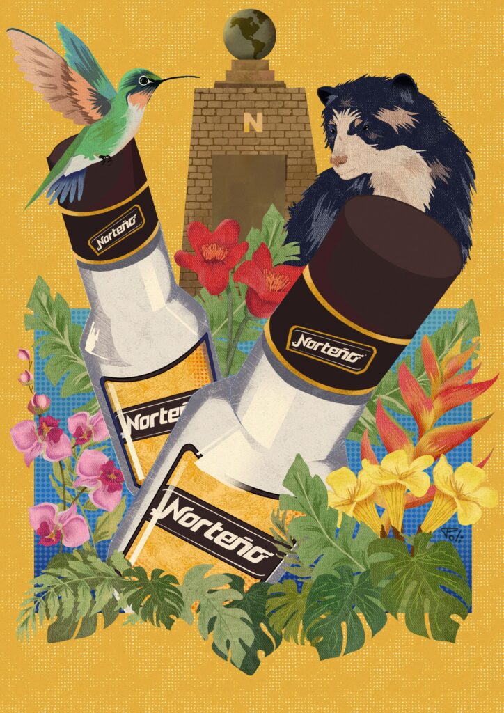 Representación de la flora y fauna del Ecuador, y cómo estos elementos forman parte de nuestra identidad como país, además, de representar a Norteño como parte de la identidad del país, también se observa en el fondo el monumento a la mitad del mundo, un recuerdo de que somos un pueblo con maravillas únicas.