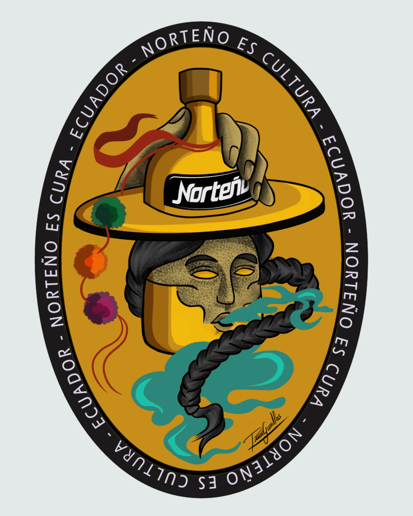 Resalto el poder curativo de Norteño mediante el uso de elementos culturales andinos (torzal, sombrero y trenza), para aludir la medicina ancestral caracterizada por uso de perfumes y alcohol.