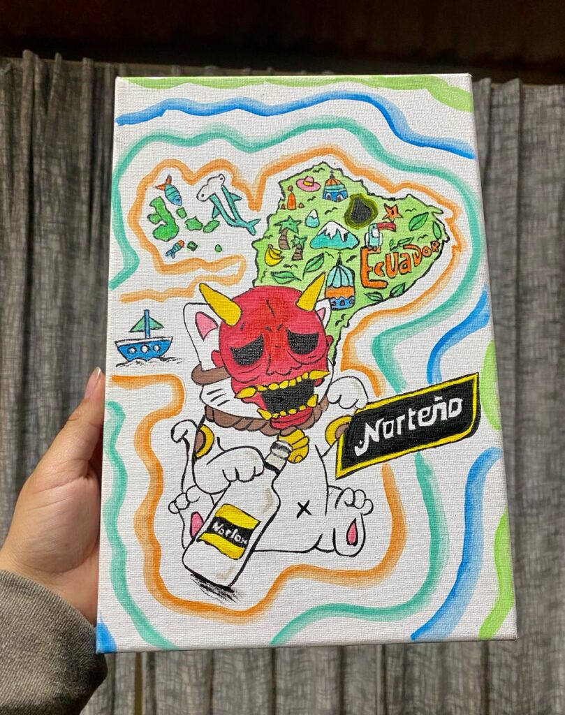Esta obra nace de donde vengo, esto no es una pintura bonita: es identidad, mi obra carga una botella no por vicio sino por memoria, porque se brinda por lo vivimos.