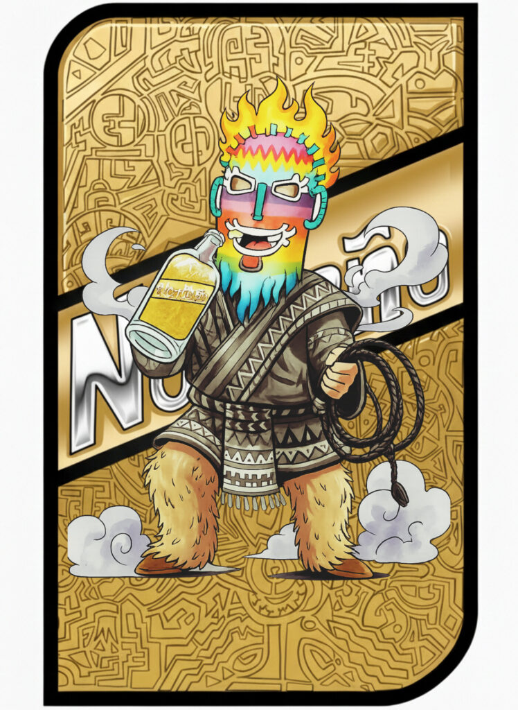 El aya huma como símbolo de prosperidad sale cada año para alegrar la fiesta y bendecir la cosecha hoy usado como elemento de las vivencias de los ciudadanos y de fondo un patron geométrico que guarda elementos como la venus de valdivia animales representativos de la ciudad que se encuentran de manera sutil en este patron de formas