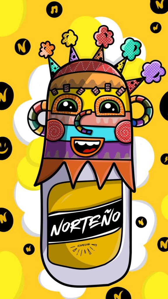 Me inspire en una mascarada de diablo huma que tengo y me acompaña a todo lado,entonces hice está ilustración pensando en que el norteño es una marca de licor conocida y le faltaba un toque más ecuatoriano entonces por eso la mascarada de diablo huma