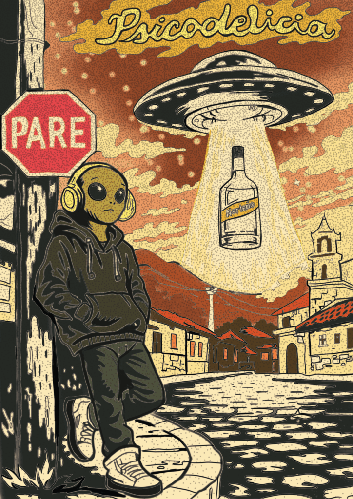 Esta ilustraUn personaje que observa, resiste y sigue su camino, mientras algo más grande lo llama. Arte y música unidos por una misma idea: no perder la esencia.