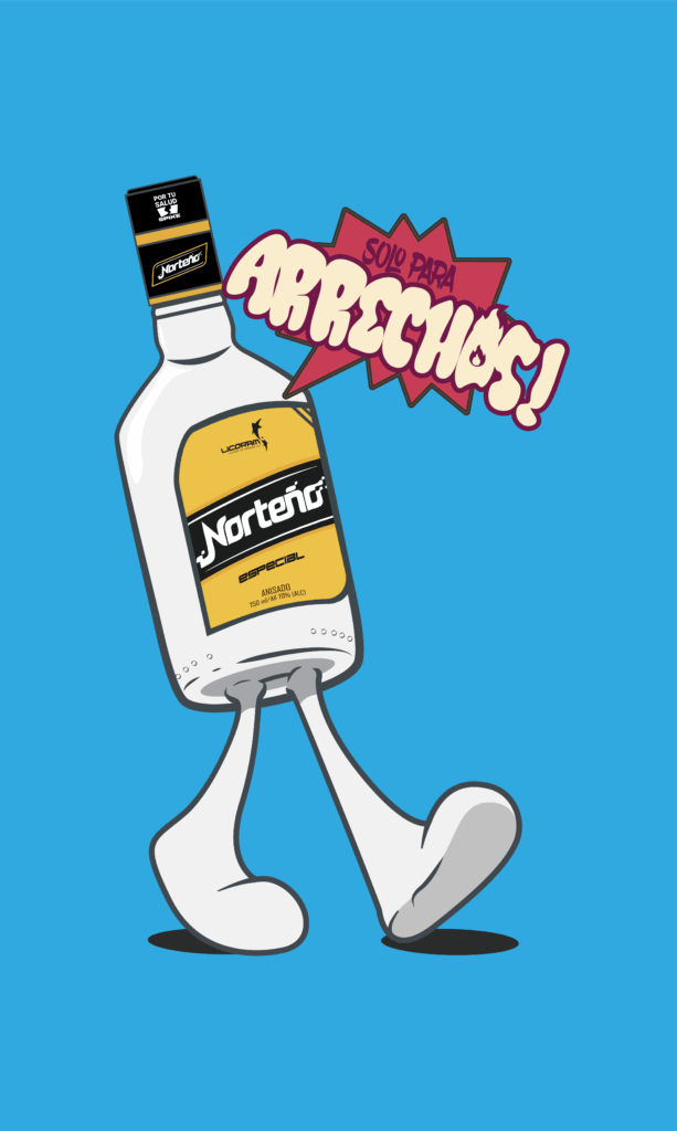 La propuesta digital presenta al producto insignia de Norteño como protagonista principal, transformándolo en un personaje animado que camina con determinación y actitud. Este recurso visual comunica de manera directa y lúdica la energía irreverente y festiva que caracteriza a la marca. El diseño adopta un estilo cartoon desenfadado con sutiles reminiscencias vintage, evocando la tradición y el arraigo cultural de Norteño en el imaginario ecuatoriano: un licor icónico que ha acompañado generaciones en celebraciones, reuniones y momentos de camaradería. Por otra parte en el aspecto cromático el fondo azul uniforme y vibrante resalta la paleta clásica de la marca (amarillo intenso, negro y detalles en blanco), permitiendo que el elemento central (la botella cartoon) y el impacto tipográfico “SOLO PARA ARRECHOS!” se conviertan en el foco primordial de la composición. Se optó por un enfoque minimalista: composición limpia, elementos esenciales y contraste deliberado para potenciar la legibilidad y el mensaje (Aspectos dispuestos de forma estratégica y controlada). En la misma línea el estallido de texto en tipografía expresiva y coloquial refuerza la identificación inmediata con el público objetivo: aquellos que reconocen en Norteño una actitud valiente y auténtica. La propuesta busca generar un vínculo emocional fuerte, posicionando a Norteño no solo como un producto, sino como símbolo de pertenencia, estatus y celebración, fiel a su herencia popular y a su espíritu. De ante mano deseo extender un agradecimiento especial al equipo Norteño por impulsar esta iniciativa que celebra la creatividad y el cariño hacia la marca. Autor: SPIKE (Robinson David Chamorro Oñate)