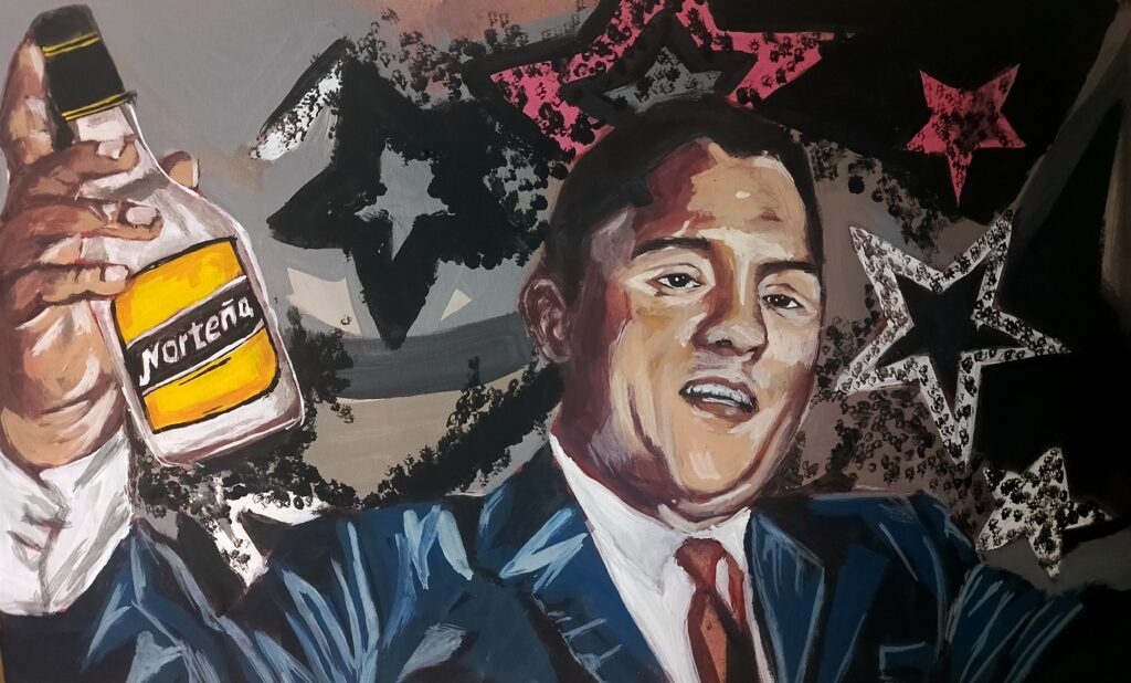 La pintura une dos símbolos ligados a la cultura ecuatoriana: Julio Jaramillo y el Norteño. La escena representa esos momentos tan nuestros, donde la música, el trago y la nostalgia se encuentran. Julio aparece sosteniendo una botella de Norteño como homenaje a las reuniones, festejos, desvelos acompañados de buen trajo y buena música. La obra busca reflejar una experiencia colectiva; quien no ha escuchado a Julio mientras se comparte un Norteño es parte del imaginario popular del Ecuador. Más que un retrato, es una evocación de identidad, memoria y tradición, donde el Norton se integra de forma natural a la esencia cultural de nuestro país.